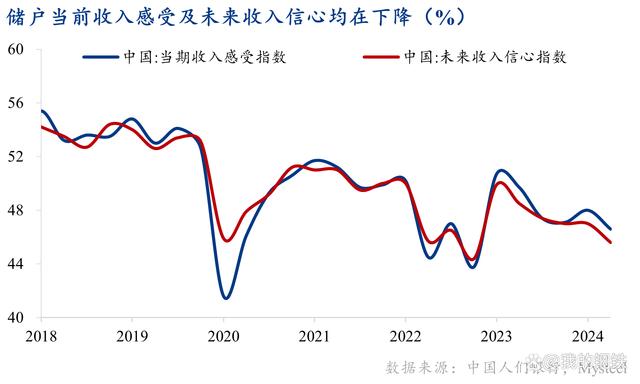 居民消費疲乏,且表現為追求性價比,導致企業生產供給偏多,競爭激烈下價格注定承壓。企業利潤變薄,居民工資收入有下行壓力,而且企業繼續投資的意愿和能力均下降,工資收入預期也轉弱。央行調查顯示,今年二季度儲戶對當前收入感受及收入信心均在下滑。