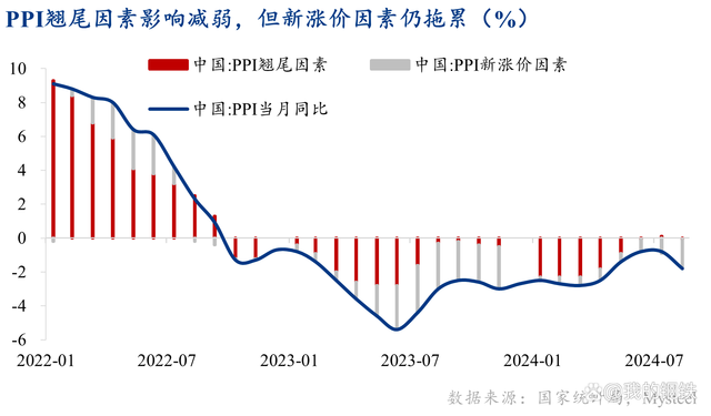 8月CPI受農產品供給波動推高,而非食品尤其耐用消費品價格低迷,暴露出實際消費需求的疲軟。PPI持續下滑也顯示供應大于需求的矛盾和外需見頂的擔憂。GDP平減指數自2023年二季度起已連續五個季度同比下降,市場開始擔憂該指標的通縮壓力會延續至2025年。
