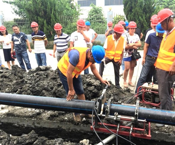 2018年9月6日上午,江都區(qū)武堅(jiān)鎮(zhèn)開發(fā)區(qū)DN200PE管道施工現(xiàn)場(chǎng)打破了往日的沉悶,一輛輛工程施工車輛整齊地停放在道路一側(cè),揚(yáng)州市惠民區(qū)域供水投資有限公司各鄉(xiāng)鎮(zhèn)供水所和測(cè)漏維修隊(duì)將在這里進(jìn)行PE管熔焊技術(shù)實(shí)踐演練活動(dòng)。