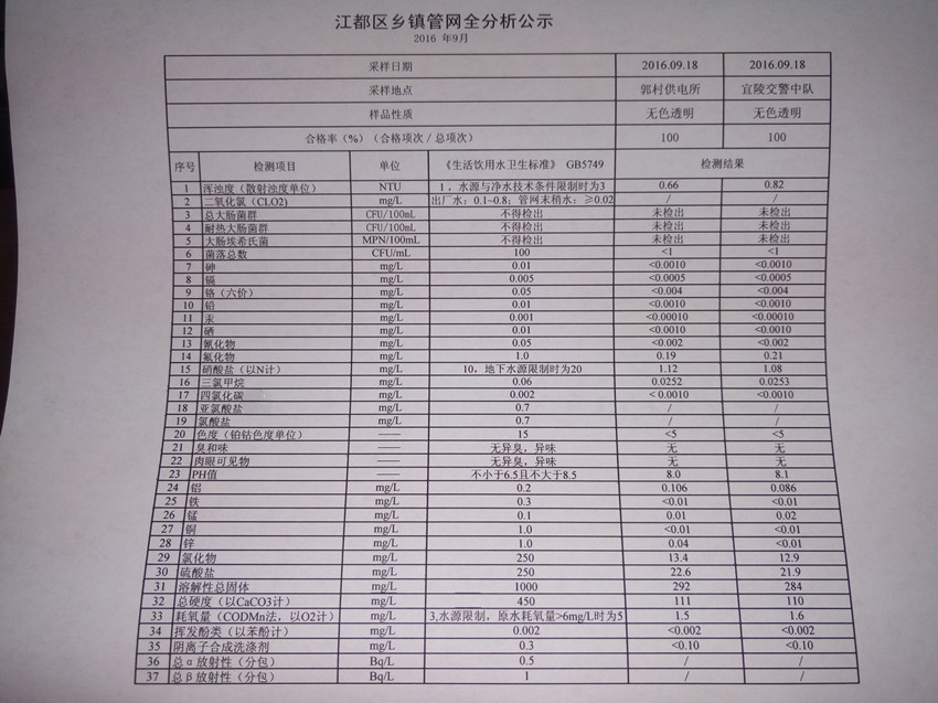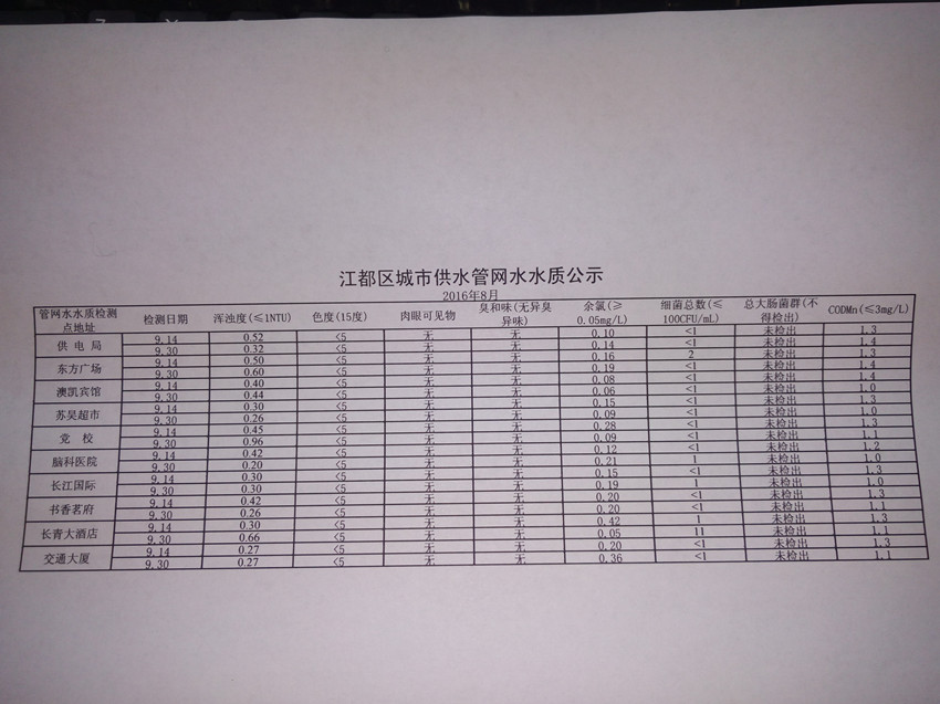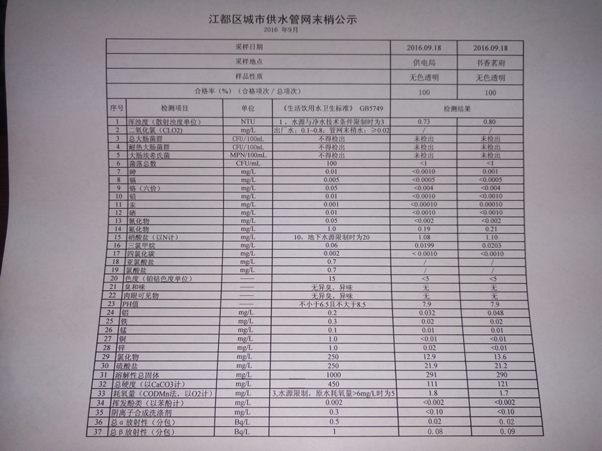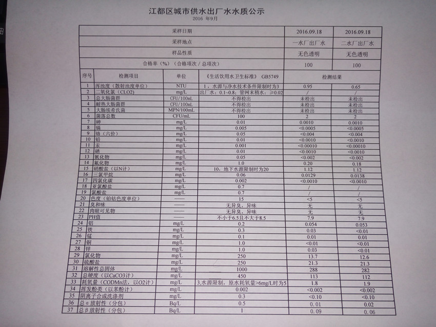 水質(zhì)公示