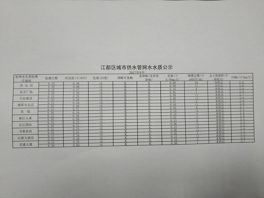 水質(zhì)公示
