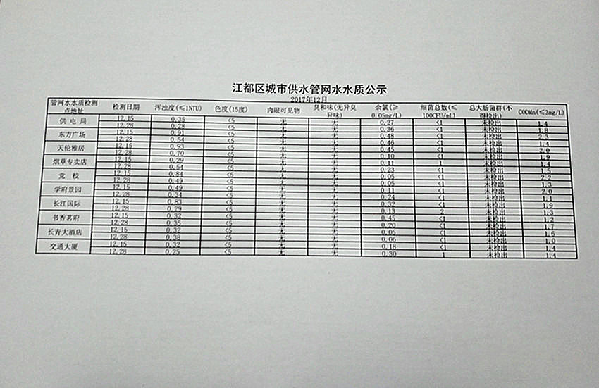 水質(zhì)公示