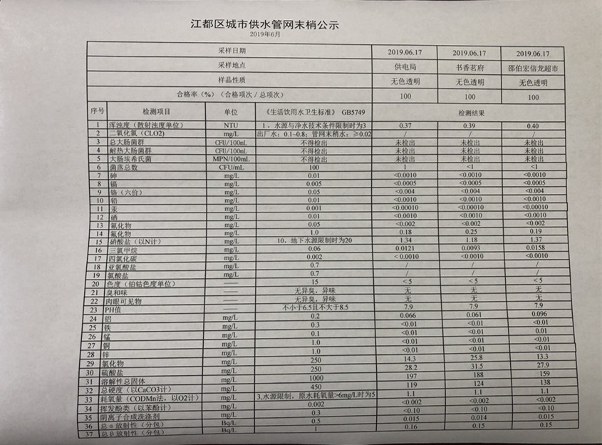 水質(zhì)公示