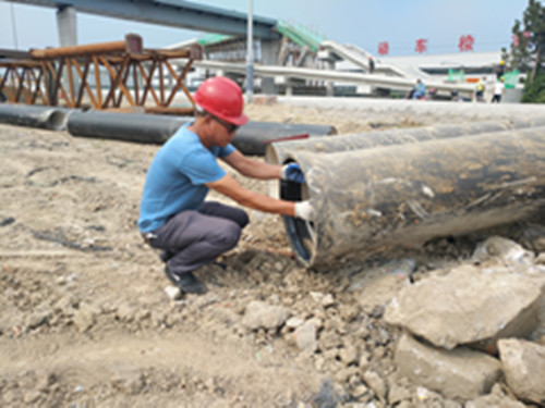一根根鑄鐵自來水管道旁邊,被曬得黑黢黢的嚴慶章按照施工程序,把橡膠圈一絲不茍地卡進管道卡槽。“這幾天的太陽毒得很,我們調整了作業時間,向早晚延伸,避開中午的高溫時段,早上5點鐘就上工地了。”老淮江路拓寬改造工程是今年區政府的重點工程,為保證工程按時保質完成,基建施工進度要保持同步,嚴慶章告訴記者,氣溫再高,定下來的工期一天也不能耽擱,爭取月底前完工。