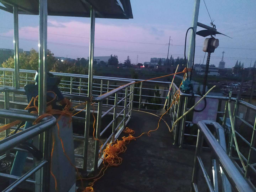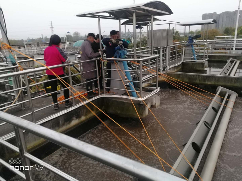 4月11日,邵伯污水廠突發(fā)潷水器蝸桿脫齒、驅動傘斷裂,導致廠內污水處理能力減半,為了確保搶修工作的安全有序推進,污水公司高度重視,立即組織現場負責人進行搶修工作部署及動員,從技術指導、備件材料、安全管理等多方面進行梳理、安排,確保潷水器搶修工作在規(guī)定時間節(jié)點內安全高效的完成。本次現場搶修工作由設備管理辦公室牽頭,會同第三方維修單位,立即展開搶修工作,進行現場設備故障分析、拆卸、謹防潷水器堰口下落至池底、固定好設施,并在現場架接臨時管線,以保證污水的正常處理。通過污水公司干部職工的共同努力,潷水器搶修項目均按計劃完成。邵伯污水廠和設備管理辦公室充分發(fā)揮主觀能動性、同心協力,克服了搶修任務重、工期短等不利因素,從安全工作實際出發(fā),經過48小時不間斷搶修,高效有序的完成搶修工作。