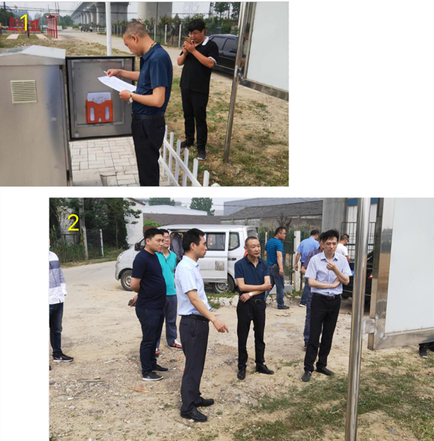 圖1、2為上級部門領導檢查農村污水處理設施現場運行狀況。