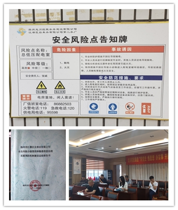 為積極響應(yīng)我區(qū)安全風險分級管控和隱患排查治理雙重預(yù)防機制建設(shè),充分發(fā)揮其防范和遏制事故發(fā)生的作用。江都區(qū)自來水公司全面貫徹“安全第一、預(yù)防為主、綜合治理”安全生產(chǎn)方針,開展了為期四個多月的“雙重預(yù)防機制”建設(shè)工作。