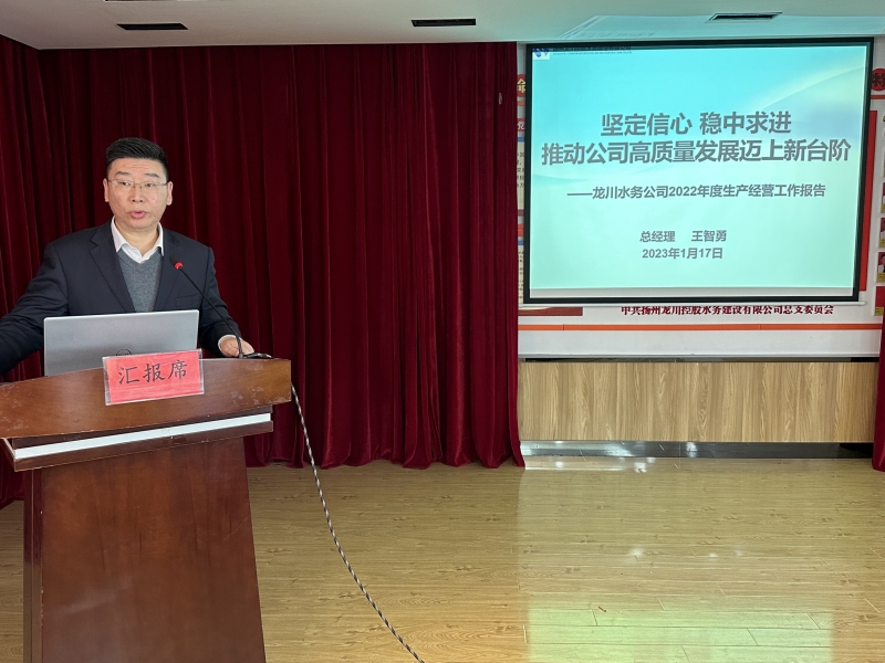 在本次大會匯報交流環節,分別聽取了計劃財務部、運營技術部、黨群工作部、自來水公司、惠民區域供水公司、龍泉建設工程公司、龍川污水處理公司等七個部門單位2022年工作總結報告。各部門、子公司負責人分別圍繞2022年全年生產經營指標、重點工作完成情況、存在的主要問題、解決對策以及2023年工作計劃作了交流匯報。