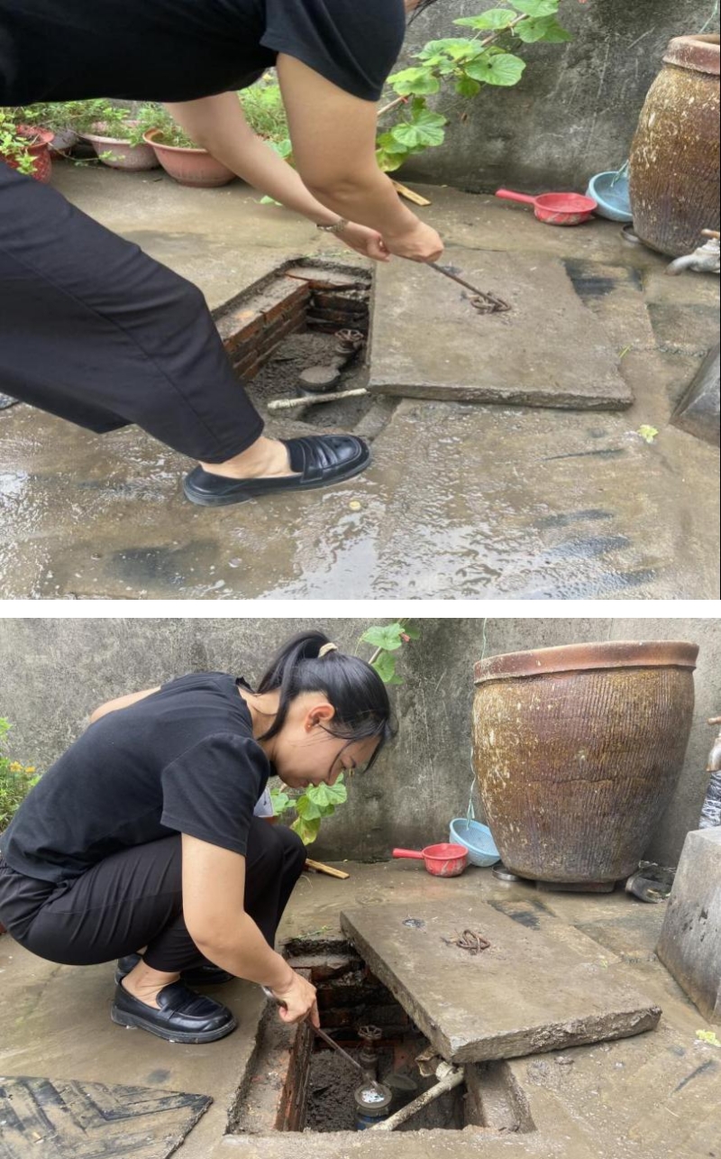 胡小娟是邵伯供水所成立初期就加入的“老員工”了,她負責的區域離鎮區較遠,要騎行半小時左右才能到達抄表區域,到達后停下車輛,拿起撬桿,將10多斤的厚水泥蓋撬起,雙腳跨入水表箱,將水表周邊泥土砂石清理完,表盤擦拭干凈后讀取數據、記錄數據,天氣悶熱,不一會,她的后背已經濕透,擦了擦汗又前往下一個水表點,重復著掀井蓋、清理表面、趴下看表讀數等這樣的“機械化”動作。
