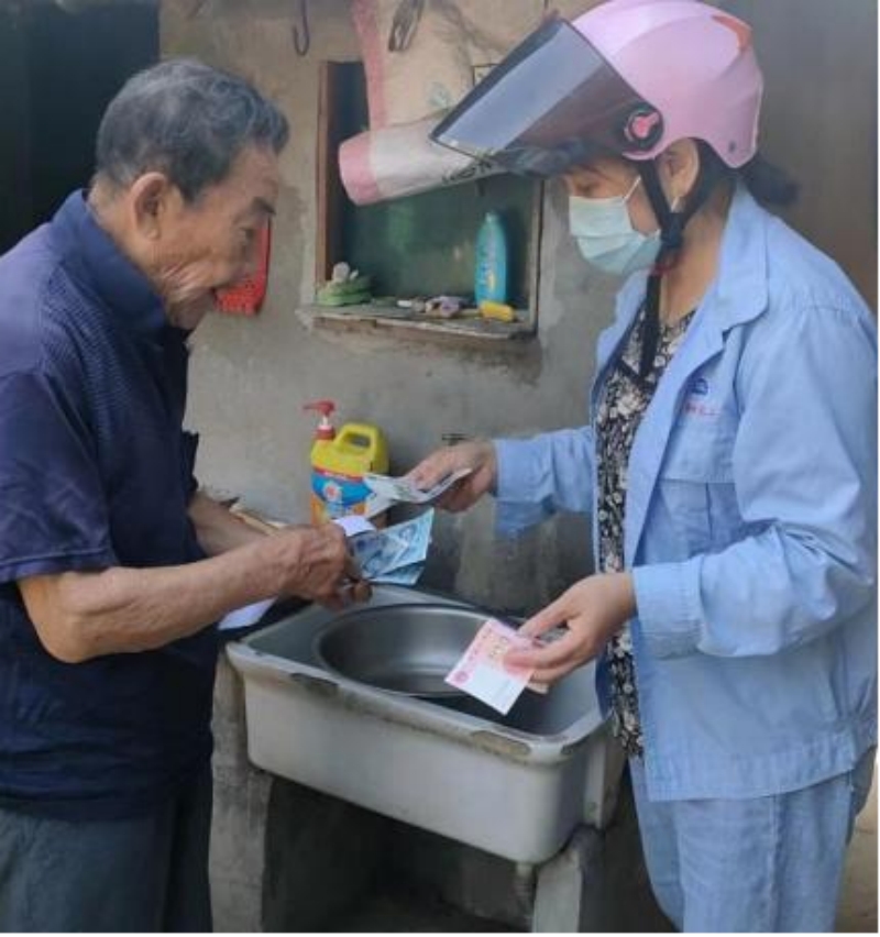 沈粉妹與田金蘭同樣也在工作交接中,她的區(qū)域是在丁溝的麾村,農(nóng)村偏遠(yuǎn)地區(qū)較多的就是留守兒童與孤寡老人,他們不會(huì)智能手機(jī),甚至腿腳不便。特殊情況都需要“師傅”交接清楚,以便“徒弟”接下來知道哪些用戶需要上門服務(wù),在她們一次次的上門服務(wù)中,用戶也與她們建立了深厚的感情,一看到她們的身影,早早就準(zhǔn)備好需要繳納的水費(fèi)。