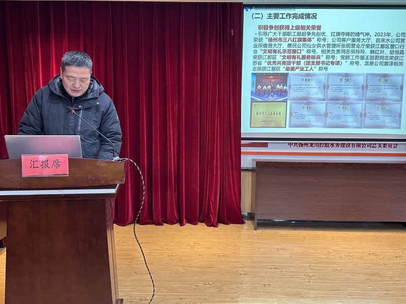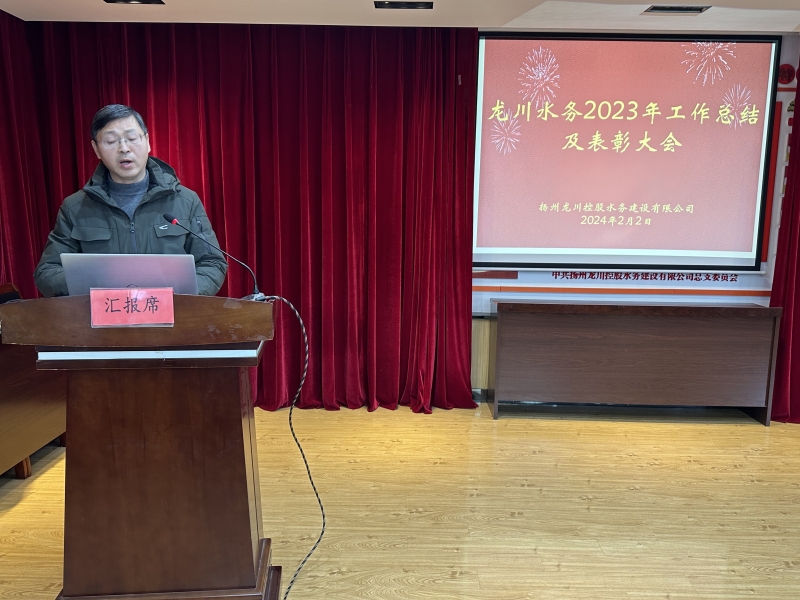 2024年2月2日上午,揚州龍川水務公司召開2023年度總結表彰大會,公司全體領導班子成員、受表彰的先進集體和先進個人代表、各單位負責人及部分職工代表共80余人參加了本次會議,會議由常務副總經理劉書政同志主持。