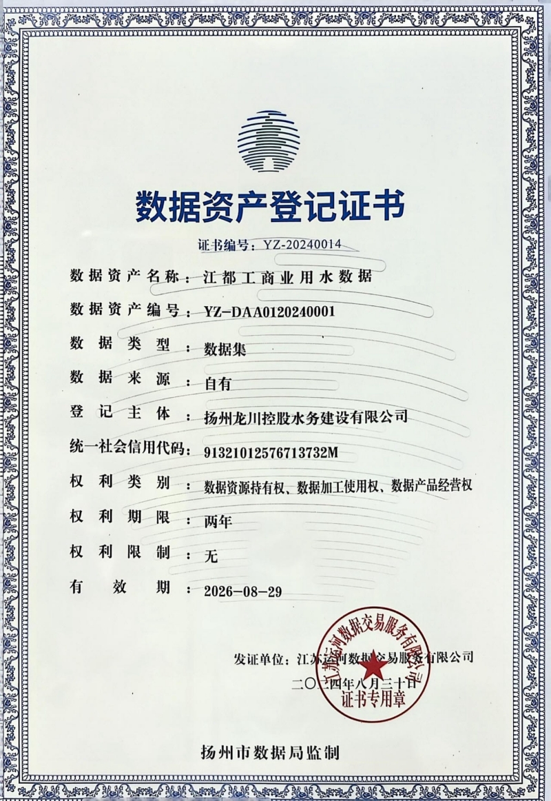 展望未來,揚(yáng)州龍川水務(wù)將繼續(xù)秉持“以水為本、服務(wù)社會(huì)”的宗旨,不斷提升數(shù)據(jù)管理水平和服務(wù)質(zhì)量,為江都區(qū)經(jīng)濟(jì)與社會(huì)發(fā)展提供更加安全、優(yōu)質(zhì)、高效的服務(wù)。相信在數(shù)據(jù)資產(chǎn)登記證書的助力下,龍川水務(wù)將在智慧水務(wù)的新征程上創(chuàng)造更加輝煌的業(yè)績。